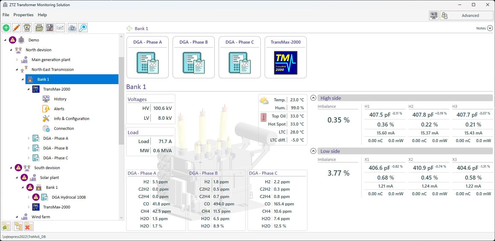 ZTZ Services developed TraMoS software to give engineers and asset owners a complete, real-time picture of transformer health. By integrating trend data from DGA and bushing monitoring systems, our software transforms complex electrical, chemical, and mechanical data into actionable insights